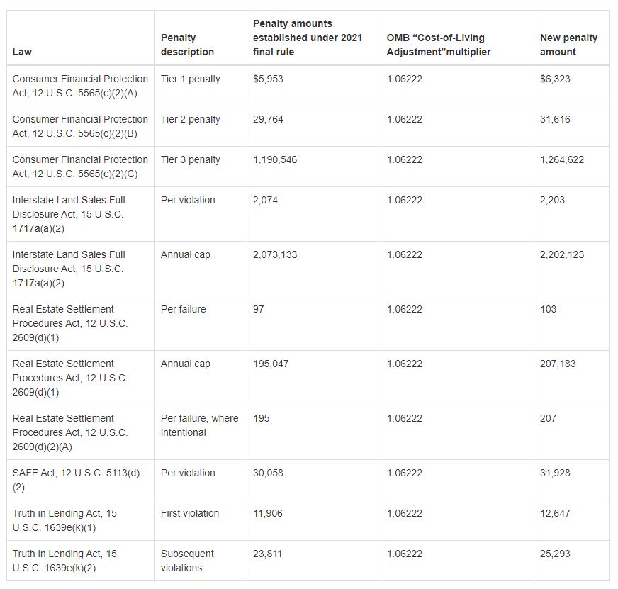 CFPB Increases Civil Penalty for Certain RESPA Violations