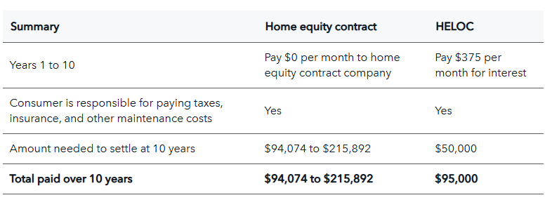 - Home equity contracts are complex financial contracts that can be difficult to understand or compare to other options, and companies currently provide non-standardized disclosures. The final repayment amount depends on a complex interplay of numerous factors, some of which won’t be known prior to settlement. For example, some home equity contract companies credit the homeowner for renovations or improvements that increase the value of the home, while others do not. As another example, some home equity contract companies place an upper limit on the total settlement amount a consumer could owe them, while others have no limit to the amount a consumer might end up paying.