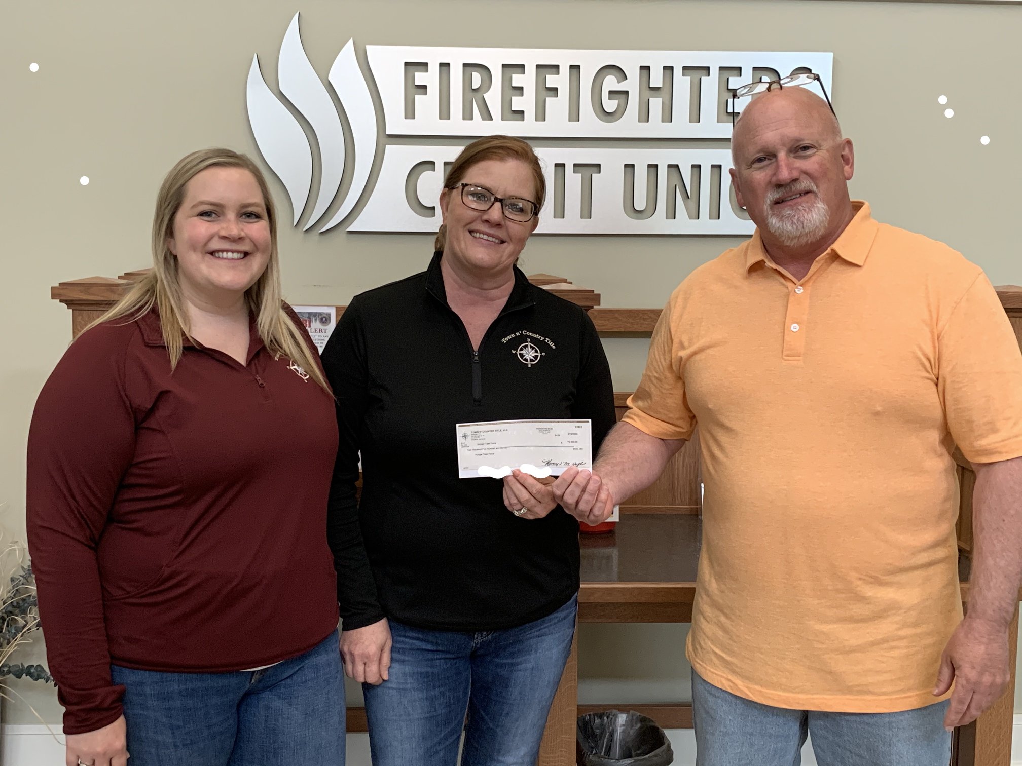 In total, $184,000 was raised through the campaign. Pictured is (left to right) Jennifer Luedtke (TNCT HR manager), Nancy McHugh (TNCT president/owner) and Bruce Zmolek (president of Firefighters Credit Union).