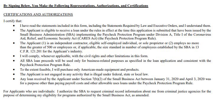 It’s important to remember that you are filling out a federal form that subjects you to potential criminal liability. Make sure you are answering honestly. The loan application requires the borrower to initial certain certifications.