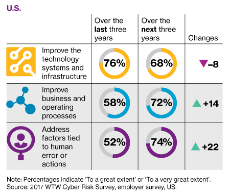 To date, technological responses have led the way. However, growing recognition of the human element in cyber risk means that most companies that responded to the survey expect to focus more heavily on operating procedures and creating a more cyber-savvy workforce in the months and years to come.