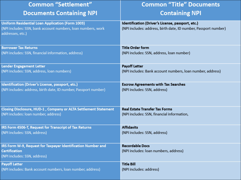 ALTA members should note that the FTC considers NPI to be any information obtained about an individual from a transaction involving a company’s services. This could include a person’s name, address, income, Social Security number or other information on an application. This also includes any information from court records or from a consumer report. The FTC said NPI does not include information that is believed to be lawfully made "publicly available." In other words, information is not NPI when steps have been taken to determine: (1) that the information is generally made lawfully available to the public; and (2) that the individual can direct that it not be made public and has not done so.