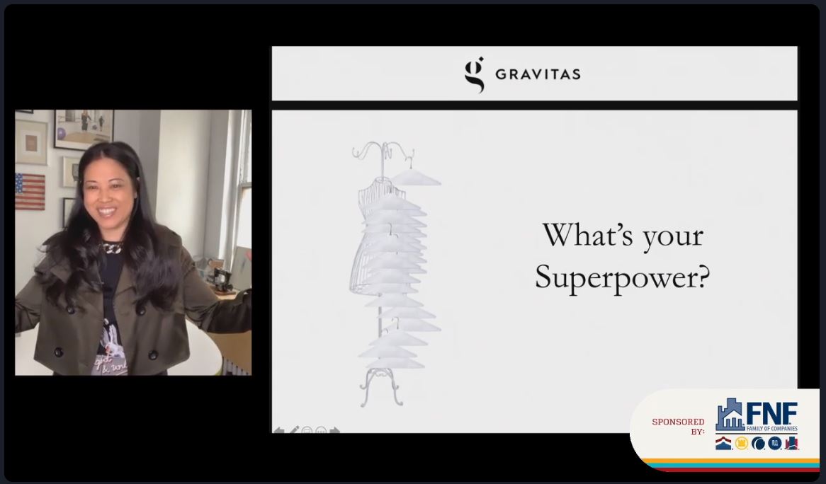 Sun explored why it’s vital to push past your potential, how to transform an idea into a movement and why you’ve got to bet on yourself every single day. She encouraged the virtual attendees to harness their “superpower” and use gravitas to advance personally and professionally.